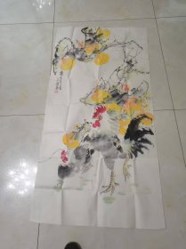 纯手绘写意花鸟画一幅 雄鸡图