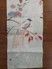 漂亮民国彩绘花鸟画一幅,34/136CM