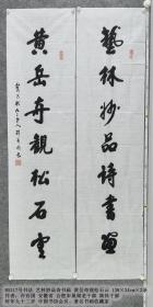 B5317号书法对联 艺林妙品诗书画 黄岳奇观松石云 138×34cm×2条许有国 1922年生 安徽省无为人 合肥市巢湖离休老干部 著名书画收藏家 现为中华诗词学会会员 中国书法美术家协会理事 中国老年书画研究会会员 世界华人美术学会授予人民艺术功臣