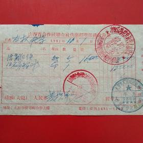1952年11月1日,增产节约,抗美援朝,跳绳,铅球,山西省左权县中学,山西省合作社联合社供应经理部销货发单,太原人民政府(生日票据,文化教育类,55-5)