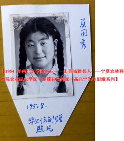 老照片:1954年,西北农学院——吕居娴(山西运城人,西安医科大学药学院教授,生药学专家)【1954年西北农学院毕业——山西临猗县人——宁夏农林科学院农业昆虫学家—蝴蝶花鸟画家—高兆宁先生旧藏系列】