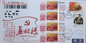 23.10.07 焦裕禄彩签4面值,焦裕禄邮资封,加贴焦裕禄邮票,首日挂号日本。