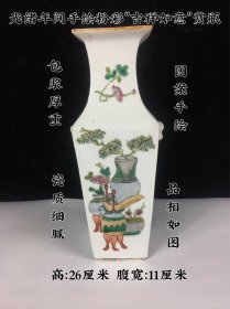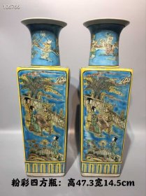 189_粉彩人物故事四方瓶,纯手工胎,画工精细,包浆厚重,器型独特,品相完整1