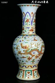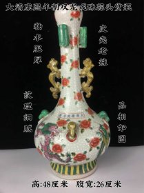 56_清晚期同咸时期细路粉彩堆塑龙纹双耳人物尺瓶.高度35公分.全品完美品相.1