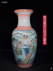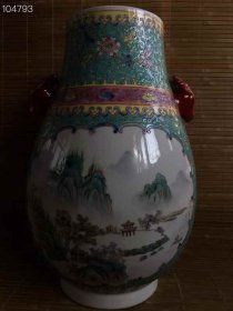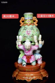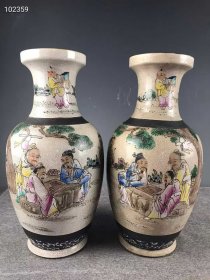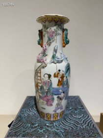 321_乾隆粉彩人物瓶,纯手工胎,器形优美,造型周正挺拔,品相完整。1