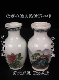 18_粉彩白瓷手绘风景赏瓶 画工精美 胎质细腻 细节如图1