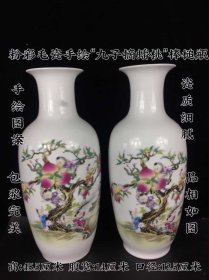225_粉彩毛瓷九子蟠桃赏瓶,瓷质洁白细腻,手绘图案,寓意长长久久,多子多福1
