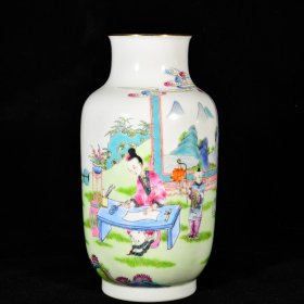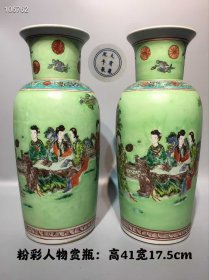 26_粉彩人物赏瓶,纯手工胎,器形优美,造型周正挺拔,品相完整。1