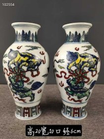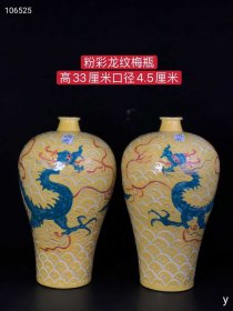 233_粉彩龙纹梅瓶,纯手工胎,器形优美,造型周正挺拔,品相完整。1