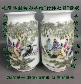 422_乾隆年间粉彩手绘“竹林七贤”赏瓶,包浆厚重,手绘人物。磨损自然,品相如图1