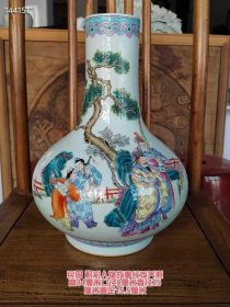 354_粉彩人物赏瓶,纯手工胎,器形优美,造型周正挺拔,品相完整。1