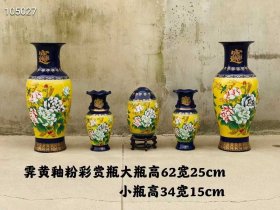 353_霁黄釉粉彩手绘赏瓶1
