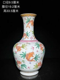 66_大清咸丰年制款,手绘粉彩鱼藻纹赏瓶一只。1