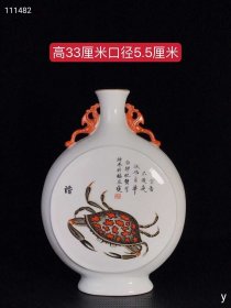 276_乾隆粉彩和(荷)谐(蟹)诗文抱月瓶,纯手工胎,器形优美,造型周正挺拔,品相完整。1