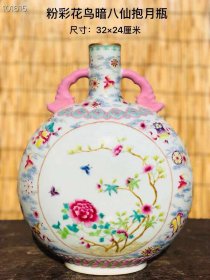 529_粉彩花鸟赏瓶,纯手工制作,制作精细,包浆厚重,器型独特,品相如图1