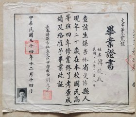 民国毕业证两张解放后五十年代交通大学毕业证一张总共四张。上海真如中学校长王亚文担任上海海陆空策反组组长。毕业西南联合大学黄埔第四期湖南涪陵人。江苏太仓人毕业证书。