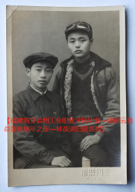 老照片:福建宁德——古田县中山路,金门照相馆钢印,男子特色合影。 1952年11月15日照,看背题。【福建省立福州工业职业学校毕业—清朝云贵总督林绍年之侄—林葆浏旧藏系列】