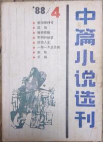 《中篇小说选刊》1988年第4期(周梅森《国殇》王蒙《要字8679号》池莉《烦恼人生》谌容《懒得离婚》叶兆言《枣树的故事》等)