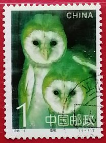 袁袁收藏中国邮票 1995-5 草鸮 4-4 信销 中型猛禽,猫头鹰的统称。现有鸮132种,我国有26种,其中体型最大者是雕鸮,常见的种类有长耳鸮、短耳鸮、仓鸮、草鸮、雪鸮。翅膀边缘锯齿状结构消除气流噪声,实现静音突袭。95%的食物是鼠类,间或捕食小鸟或大型昆虫。在大部分地区鸮被视为不吉利的鸟甚至叫它“报丧鸟”。国家二级重点保护野生动物。270°颈部旋转:颈椎14节(人类仅7节)实现“扭头不转身”