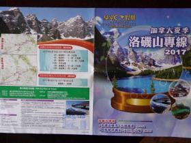 加拿大夏季洛矶山、贾斯伯专线 2017年版 8开折页 中文版 洛矶山游览图 贾斯伯游览图 洛矶山夏季4天逍遥游、贾斯伯洛矶山5天自然之旅行程介绍