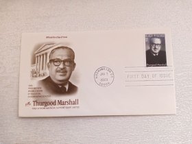 美国首日封 2003年美国最高法院大法官瑟古德·马歇尔首日封 第一位担任美国最高法院大法官的非裔美国人 贴美国邮票 黑人遗产-瑟古德·马歇尔邮票 盖有“华盛顿2003年1月7日”邮戳 瑟古德·马歇尔1908-1993是美国20世纪的一位英雄:他承接并胜诉的"布朗诉教育委员会案"导致美国废除了种族隔离法。成为美国最高法院法官后,始终致力于增进包括少数族裔、妇女和移民在内的全体美国人的权利