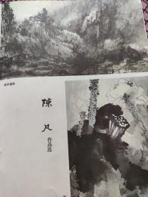 美术资料【散页印刷品】--—国画——陈凡作品选【翠屏叠嶂,荷塘晚笑,情觅山居,耸翠】。郭钧西作品选【山村访友,杏花春雨,山顶人家,山村小学,山居,万家身在画屏中,融雪】1515