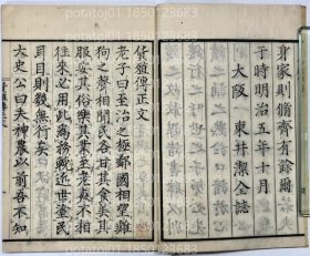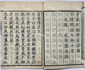木刻本《史记》卷127~卷130,修史阁九百梅花唫馆江陵张圣奘旧藏,收入:日者列传、龟策列传、货殖列传、太史公自序、论史例、补史记序、约117页234面,原装一册,轻微破损,尺寸29*18.5厘米。