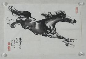 【同一来源】著名画家、徐悲鸿弟子、“当代画马第一人” 韦江凡 辛酉年(1981) 水墨作品《马》一幅(纸本软片,约2.8平尺,钤印:韦、江凡作画、与人一心)HXTX194773