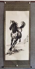 陈天明,著名画家,1942年出生于河南洛阳,延习徐悲鸿《六骏图》的画法,主要画《墨马》代表作品《八骏图》,拍卖价值不菲,原装裱立轴保真手绘作品,画芯尺寸为134x65,品相如图自然旧