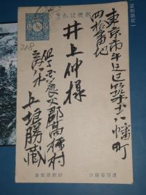 大正6年10月8日 毛笔书写 明信片 上垣胜藏 寄东京市 井上仲