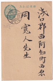大正7年(1918年)8月19日,日本浅口郡冈山,壹钱五厘,邮资明信片819
