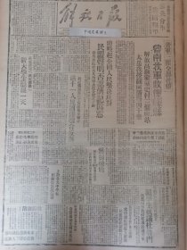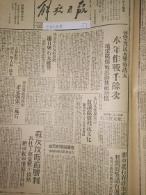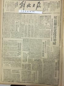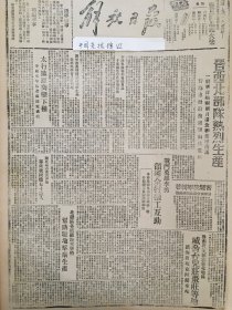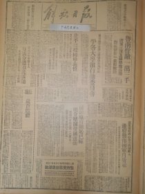 1947年解放日报 鲁南我军收复峄县(枣庄),解放高显蒙城史村三个车站,太岳我控制同蒲路四十里,政协周年李敷仁先生谈话,为中国获得独立解放,民盟将继续艰苦斗争,民盟声明否认蒋记伪宪,苏报评价中国解放区,新社会关系行成,热河省土地改革转入复查,晋绥百万农民获地,