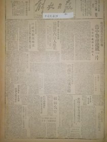 1946年解放日报 太岳锋县等地,赶制地雷,学习爆炸.家军官放下武器以后:冀鲁豫蒋俘敎导团巡礼.七辆坦克的毁灭:记鲁南自卫战中的神炮手.陈纳德之中美实业公司,将在蓉投资.辽西军民反蚕食斗争中,一月歼敌两千三百.张澜在沪发表声明,继续拥护政协路线.开展边区部队的连手运动.鄜县学生慰问子弟兵.