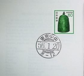 日本首日封:日本普通邮票系列1981年发行《国宝系列 - 寺钟(平等院)(面值60)》卷筒邮票首日封(盖“东京中央”邮政邮戳)