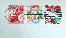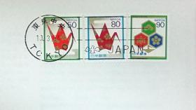 日本首日封:日本祝贺邮票第3组系列1994年发行《千纸鹤(面值50、80)、松竹梅(面值90)(祝贺用)》首日封(盖“东京中央”邮政邮戳)