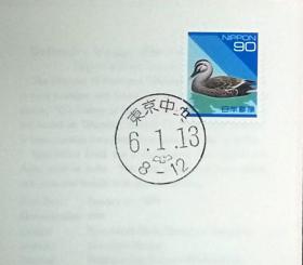 日本首日封:日本普通邮票系列(平成)1994发行《日本自然系列 - 印度斑嘴鸭(面值90)》首日封(盖“东京中央”邮政邮戳)N-4524