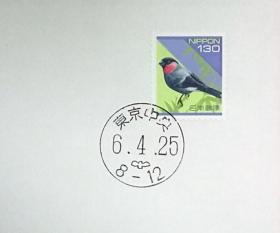 日本首日封:日本普通邮票系列(平成)1994发行《日本自然系列 - 红腹灰雀指名亚种(面值130)》首日封(盖“东京中央”邮政邮戳)