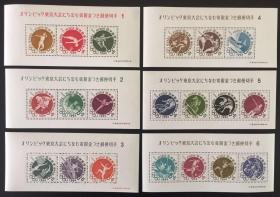 日本邮票:1961-64年日本发行《东京1964年夏季奥运会》小型张全6集6枚大全套(全品原胶新票、雕刻版)