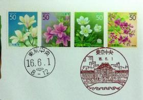 日本首日封:2004年日本地方邮政東京(東京-24)发行《东京四季之花・木V》首日封(盖“东京中央”纪念邮戳、东京中央邮戳)
