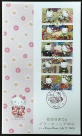 日本首日封:2008年日本发行《凯蒂猫食堂(Hello Kitty食堂)G26》邮票首日封(盖“Hello Kitty-东京中央”纪念邮戳、“东京中央”邮政邮戳)