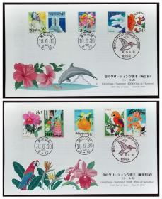 日本首日封:2006年日本发行贺礼系列《夏天的祝贺》邮票首日封共2枚全(盖“小鸟·东京中央”纪念邮戳、“东京中央”邮政邮戳)