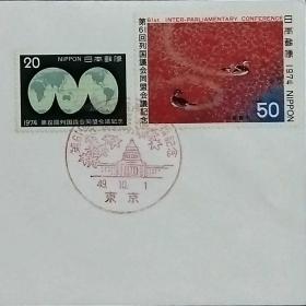日本首日封:1974年日本发行《第61届各国议会联盟(IPUC)大会·东京》首日封(盖“国会议事厅·东京”纪念邮戳)N-6802
