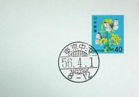 日本首日封:日本普通邮票系列1981年发行《动植物系列 - 油菜花与蝴蝶》卷筒邮票首日封(盖“东京中央”邮政邮戳)