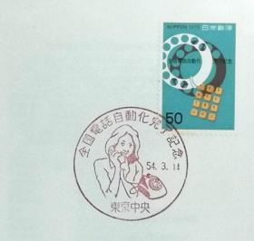 日本极限明信片:书信日(ふみの日)系列1979年发行《信和女孩、写信的博多人偶》极限明信片(盖“写信的博多人偶(ふみの日)·东京中央 ”纪念邮戳)
