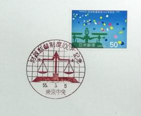 日本首日封:1980年日本发行《政府审计制度百年纪念》首日封(盖“天平·东京中央”纪念邮戳)
