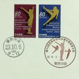 日本首日封:2011年日本发行《第43届世界体操锦标赛》首日封(盖“体操”纪念邮戳、东京中央邮戳)