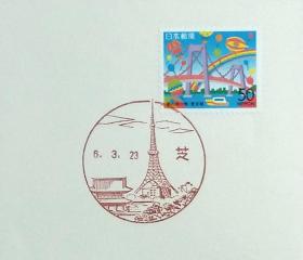 日本首日封:1994年日本地方邮政東京(東京-6)发行《梦想的桥梁》首日封(盖“东京塔”纪念邮戳)