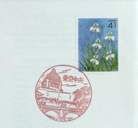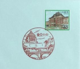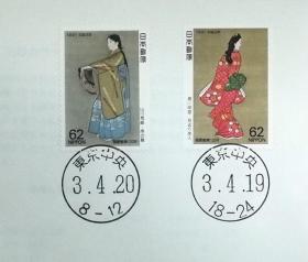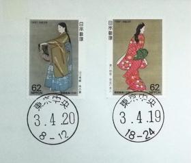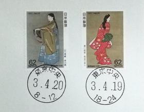 日本纪念封:日本邮戳更换系列1991年发行《邮票趣味周 - 菱川師宣画「見返り美人」、山川秀峰画「序の舞」》首日封(盖“东京中央”新版邮政邮戳(和文印))N-4117