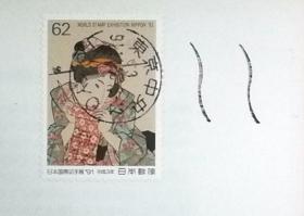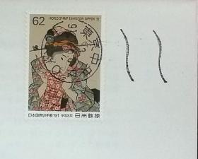 日本纪念封:日本带荧光检测功能的自动取齐压印机开始使用系列1991年发行《歌川国貞画·「こしゃく娘」》首日纪念封(盖“东京中央”邮政邮戳(新型))