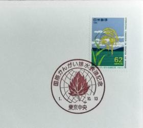 日本纪念封:日本邮戳更换系列1991年发行《邮票趣味周 - 菱川師宣画「見返り美人」、山川秀峰画「序の舞」》首日封(盖“东京中央”新版邮政邮戳(和文印))N-4149